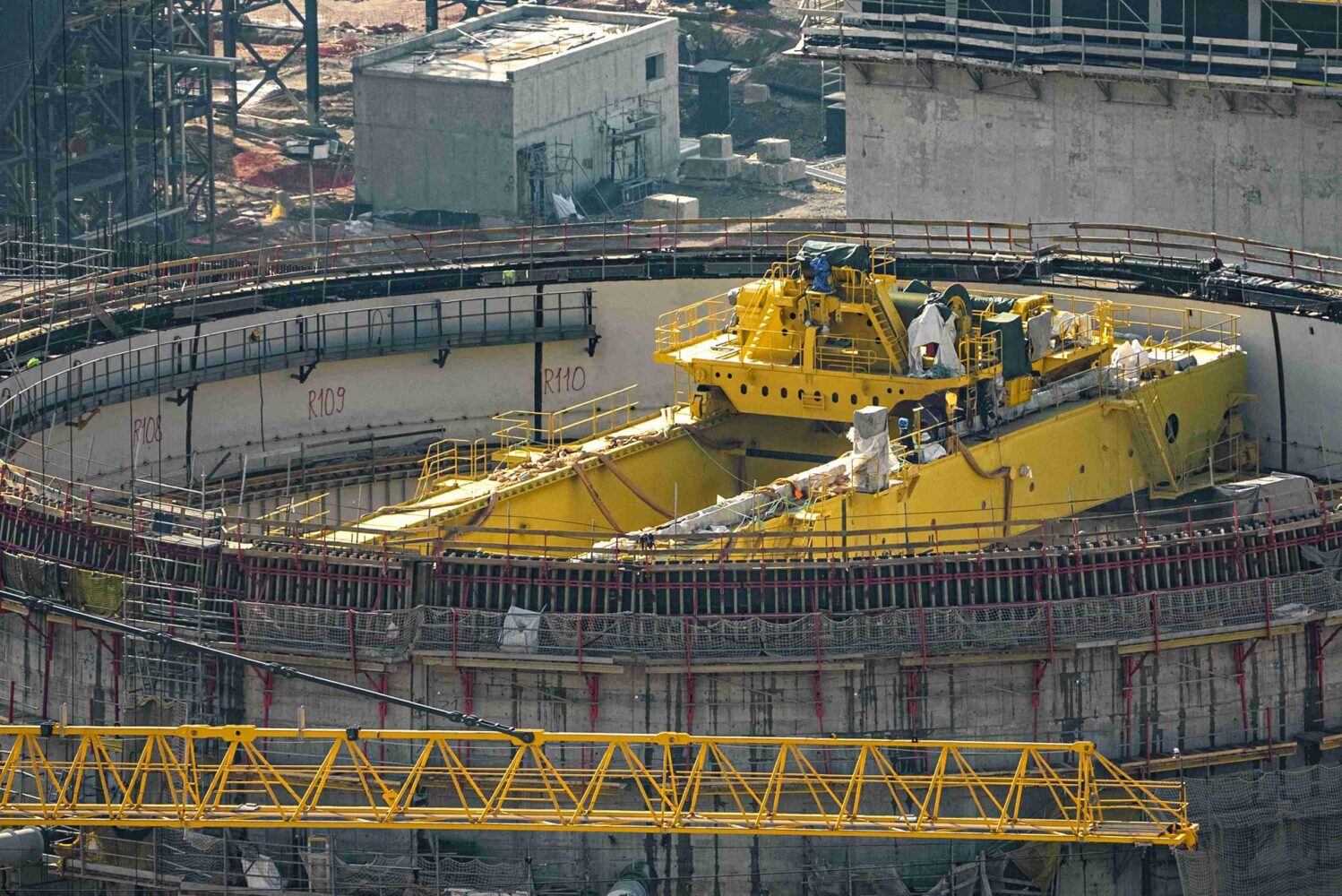 The polar crane is one of the key lifting machines in the reactor building. It will be used throughout the entire lifecycle of the nuclear power plant for moving oversized equipment, conducting reactor maintenance, and refueling. The crane trolley travels along the bridge, while the crane itself moves along a circular rail above the reactor pit, meaning lifting operations can be performed at any point within the building.